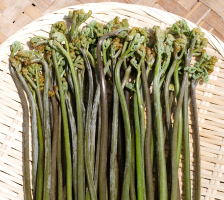 고사리는 산에서 얻을수 있는 소고기라고 불릴 정도로 단백질, 비타민 등 다양한 영양이 풍부하여, 비빕밥에 빼놓을 수 없는 재료 중 하나입니다. 고사리는 성장하면 질겨 먹을 수 없기에 봄철에 덜 자란 순을 캔 다음 잘 말려 복용하는 대표적인 산나물입니다.