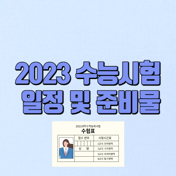 이번 수능 시험 일정은 어떻게 되는지 2023 수능시험 일점 및 준비물 에 대해 자세히 알아봅시다.