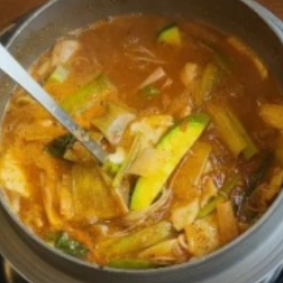 소면이 들어가서 좀 더 국물이 걸쭉해지고, 어죽처럼 밥에 말아먹기 좋아요. 소면은 개인 취향에 따라 주문 전에 수제비로도 바꿀 수 있으니 이 점 참고 부탁드려요.