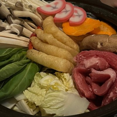 주문한 음식이 스키야키인데 다먹어갈때쯤 계란 풀어서 우동사리 추가해서 넣으면 1주문으로 두가지 음식 뚝딱이에요. 꼭 우동사리 추가해서 드세요.