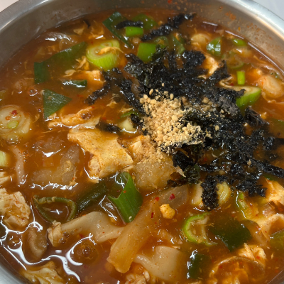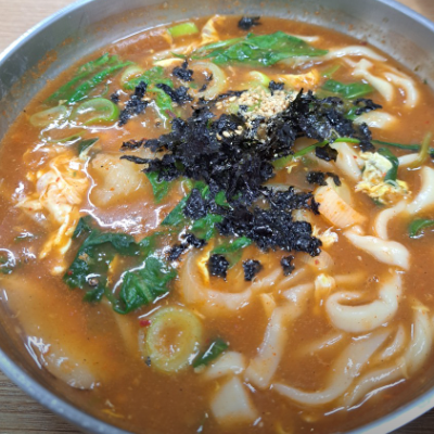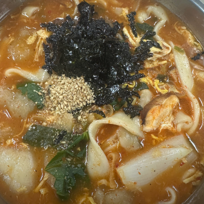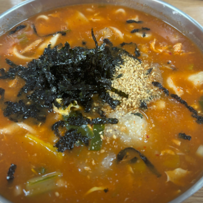 엄청 매워보이는데 맵지 않아요. 옹심이가 쫜득쫜득한것이 맛있어요.